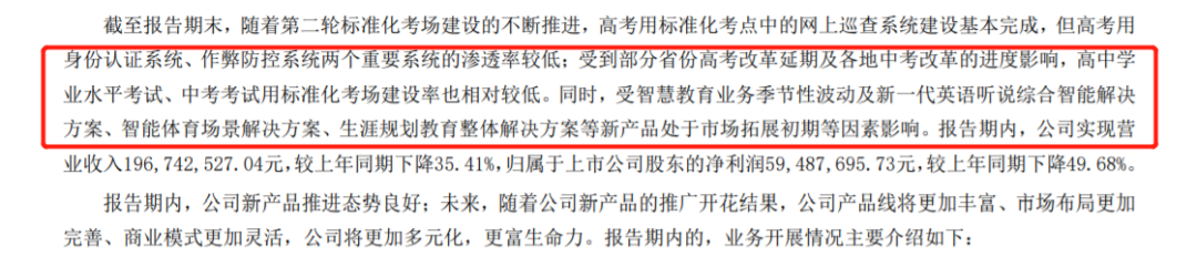 根據財報,部分省份新高考改革延期,全國高中學業水平考試用標準化考場建設率相對較低;這些因素最終影響了佳發教育的業績。