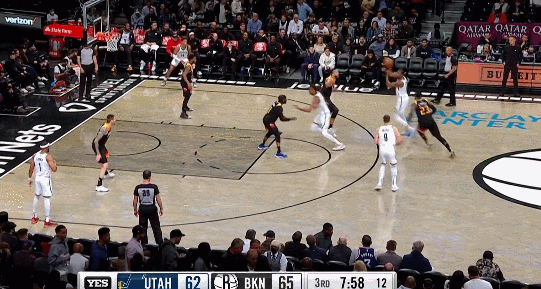 雖然看起來籃網只贏了8分,但在比賽第四節6分09秒,杜蘭特拔進那記三分的時候,籃網領先了西部第四的爵士21分,徹底鎖定勝局。