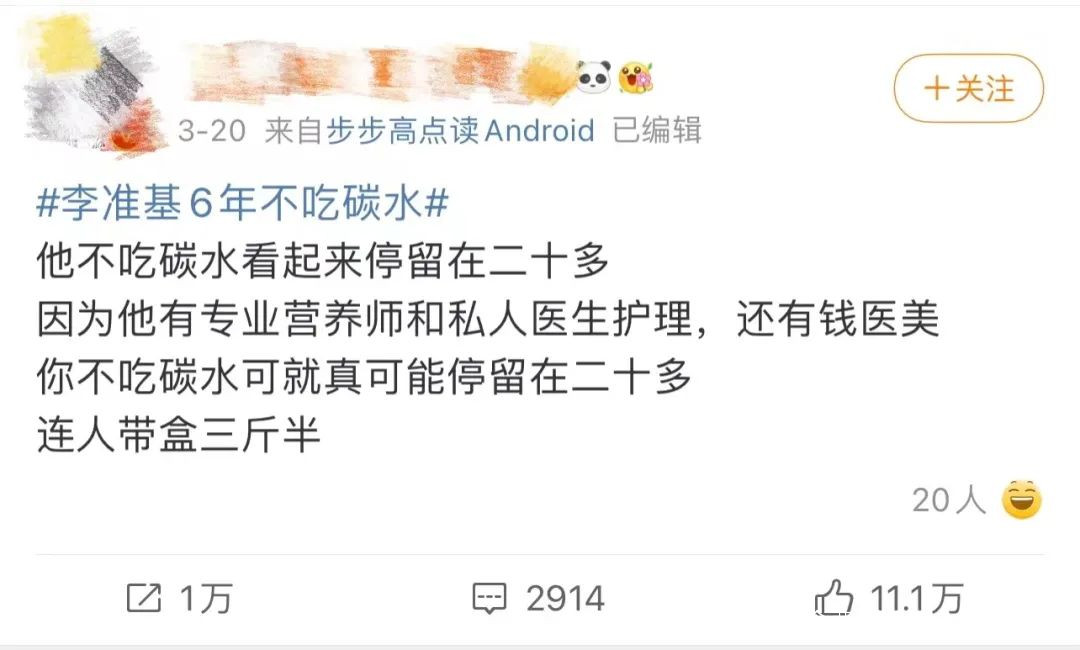 所以,“李準基6年不吃碳水,用豆腐和雞肉替代。”這句話本身就是一個具有誤導性的偽命題。