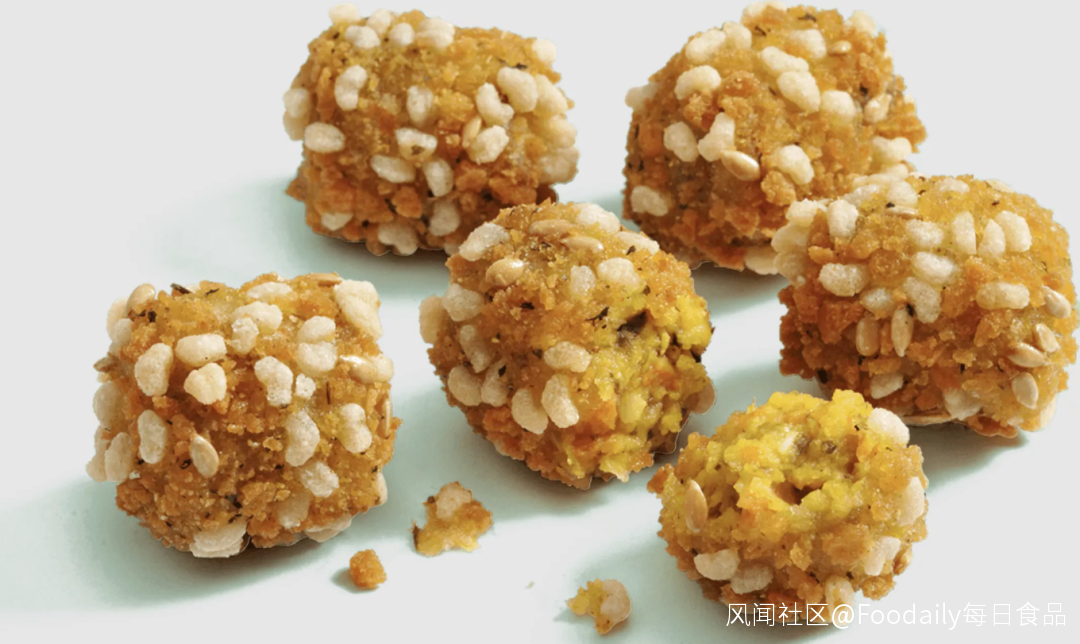 英國蛋白質公司 Quorn推出由真菌蛋白、水、蛋清和小麥粉等原料製成的替代雞肉食品,旨在重現炸雞,具有酥脆的麪包屑和更像肉的質地。