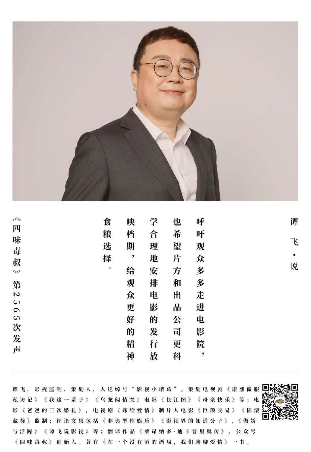 當然可能從另一個角度,我也是勸各種片方、包括出品公司,他們在排片時候能不能再科學一點,不要把大片好片都集中在這幾個大家都知道能吃飽飯的檔期,能不能分散把每一個小週末,週六、週日、週五算成是一個比較大的片子的放映集中地?我覺得這樣的話可能更健康,也更分散,觀眾的選擇也更多。