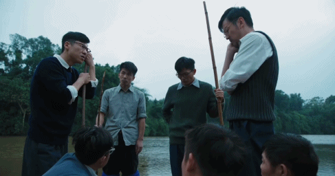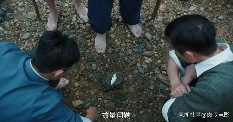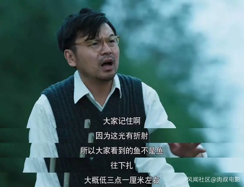 大傢伙拿着魚叉下水,水性不好的于敏就站在岸上做指揮: