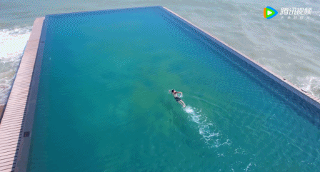 緊接着一個俯瞰視角全景,只見男主從無邊際泳池果體而出。