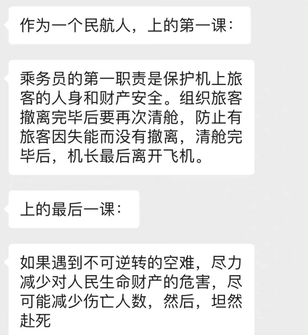 網上一張流傳甚廣的截圖裏,顯示了民航人的「最後一課」: