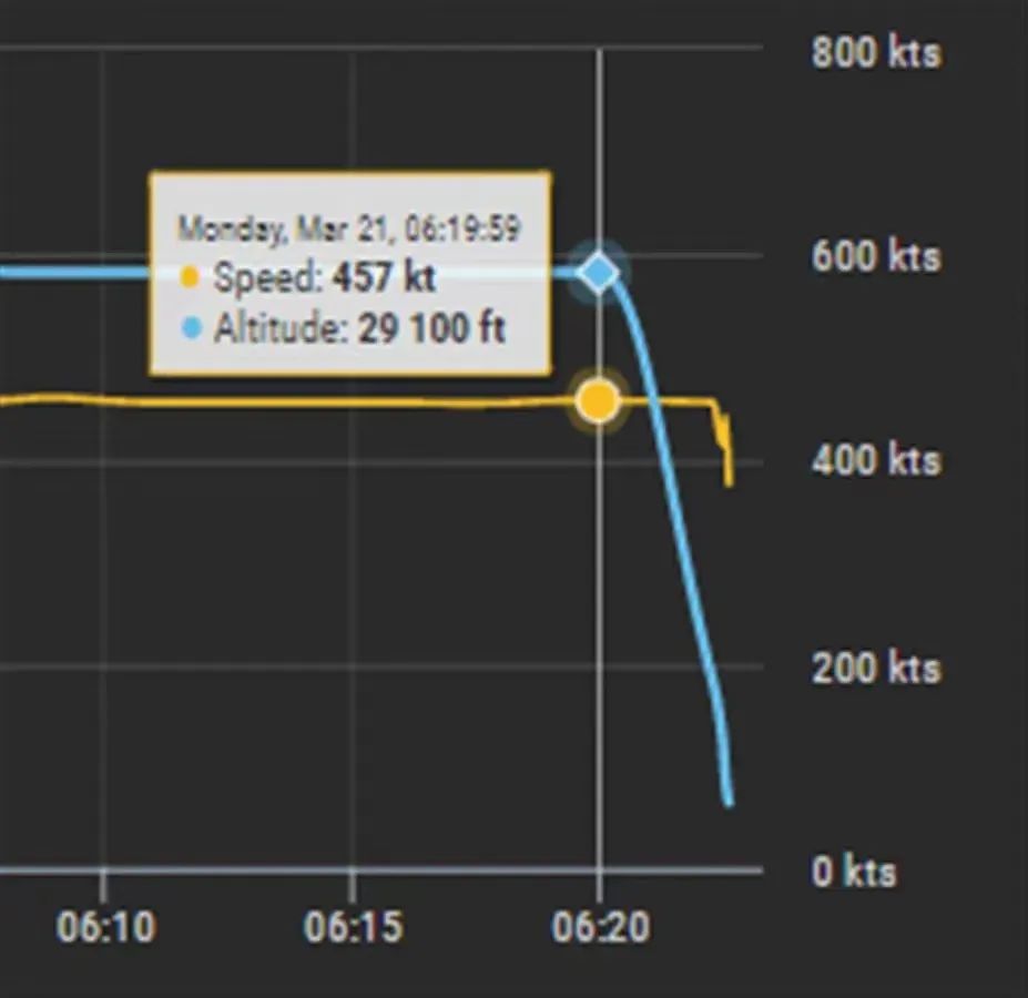 只有數據顯示飛機高度急速下降,但應答機卻沒有回應。