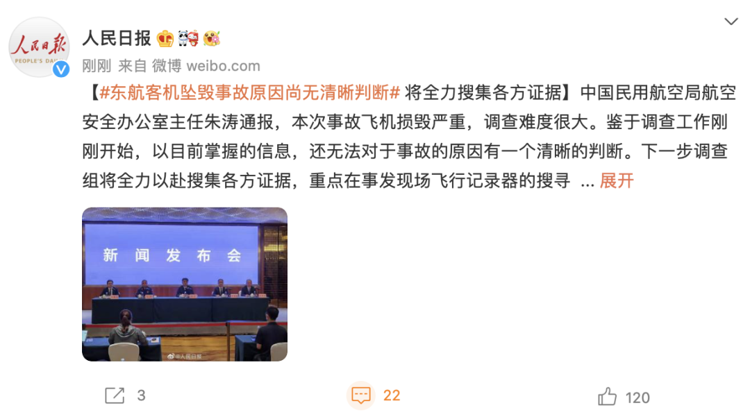就在剛剛,調查組召開#東航墜機發佈會#,通報了最新進展: