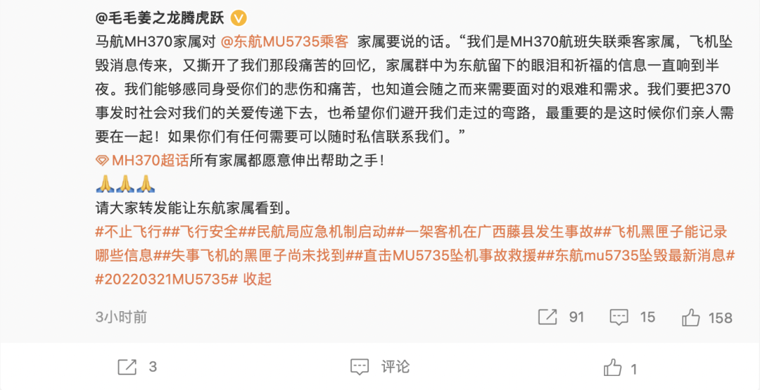 最讓人觸動的一條信息,來自八年前馬航MH370遇難者的家屬。