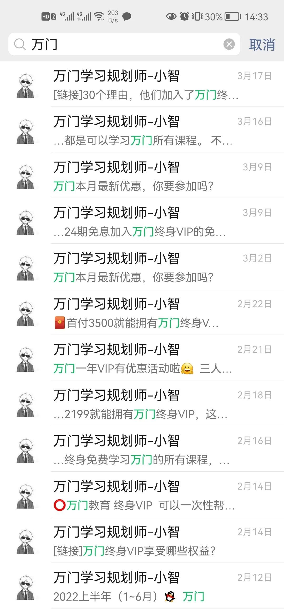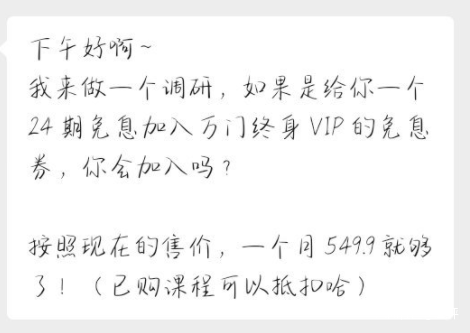 為了推動用户購買終身 VIP ,萬門的課程銷售頻繁轟炸用户,而且話術賊溜。