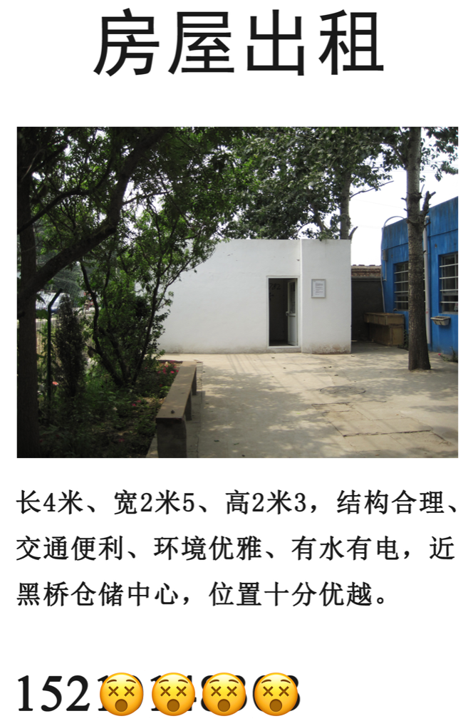 最逗的是,有一個藝術家做了一個假的招租廣告發到網上。我那幾天接到好多電話問我,你是不是有房子出租?