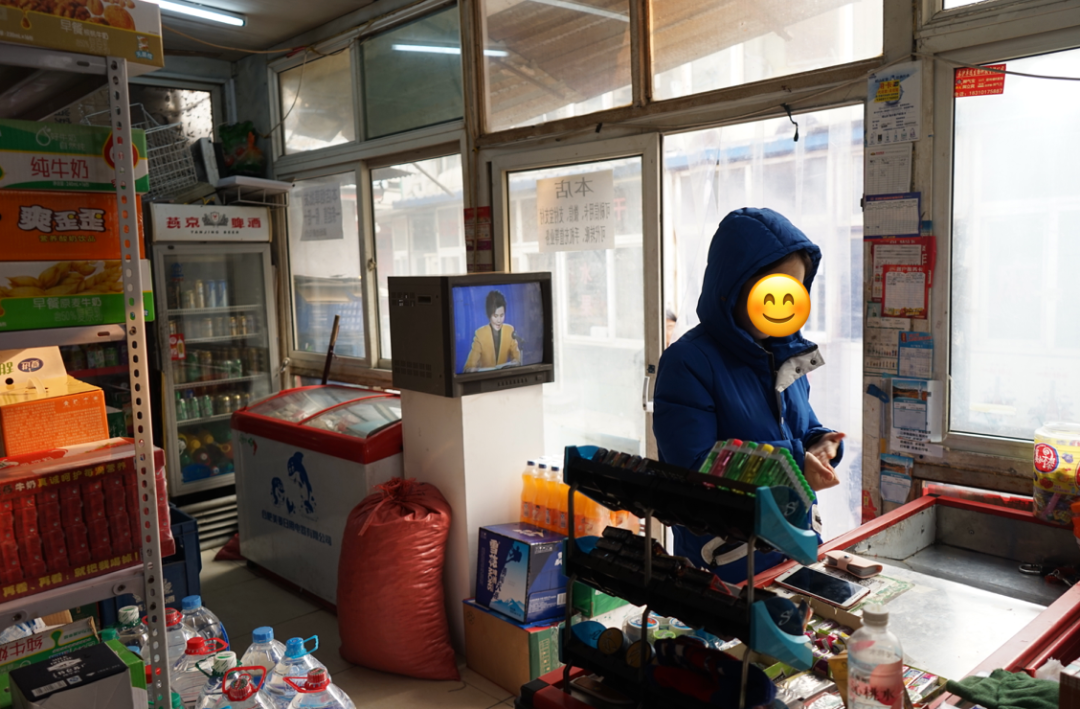 這次我們選了一家24小時超市,我經常晚上去這家超市,我發現老闆每天晚上都在熬夜追劇,電視就放在櫃枱對面。
