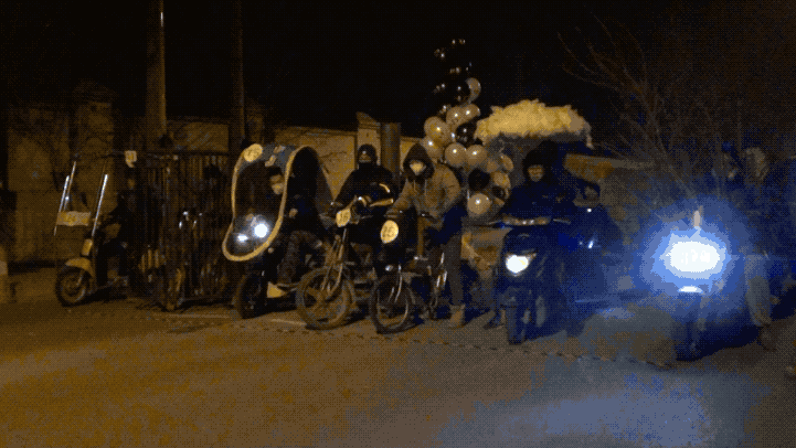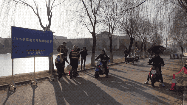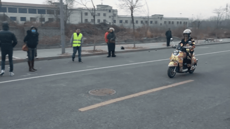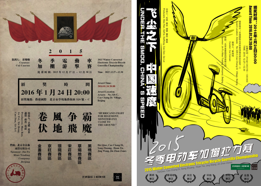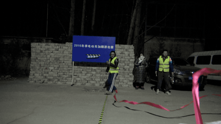 這些電動車都是他們自己改裝的,比賽就像快閃一樣,我們提前半個小時到地方給藝術家打電話,説我們到地兒了,趕緊把車推過來。大家把車推過來,一敲鑼,半個小時比完了。