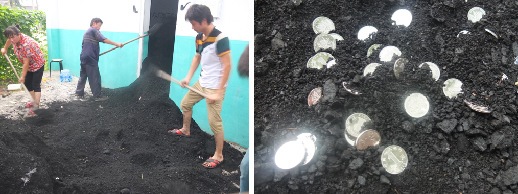 因為他覺得黑橋是一個年輕藝術家聚集的地方,他們要為房租發愁,他們可以從煤裏把硬幣挖走。於是,他像一個諷刺一樣地做了這件作品。