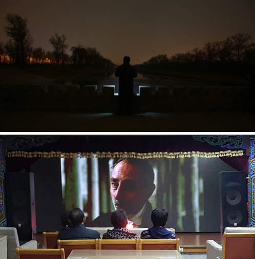 還有一個藝術家(張玥)在温榆河河面上用投影儀放了塔可夫斯基的《鄉愁》,同時他的父母也在濟南收看塔可夫斯基的《鄉愁》,我相信那個夜晚對於他和我們來説都意味着更多的情感和更多的懷念。