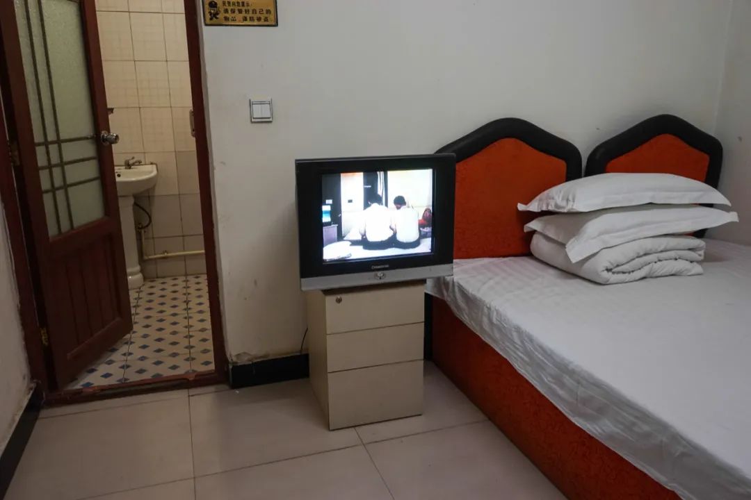 楊福東有一件作品叫《城市之光》,講的是城市的愛情故事。我就把這個視頻放到了包間的小電視機裏,我覺得兩種時空、兩種愛情在這裏形成了一種共謀。