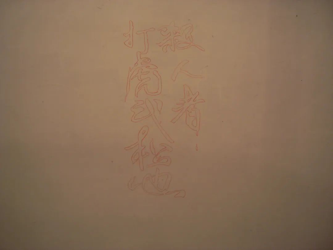 「夜走黑橋」的第一件作品非常直接,藝術家莊輝在牆上寫了一句話,“殺人者,打虎武松也”。