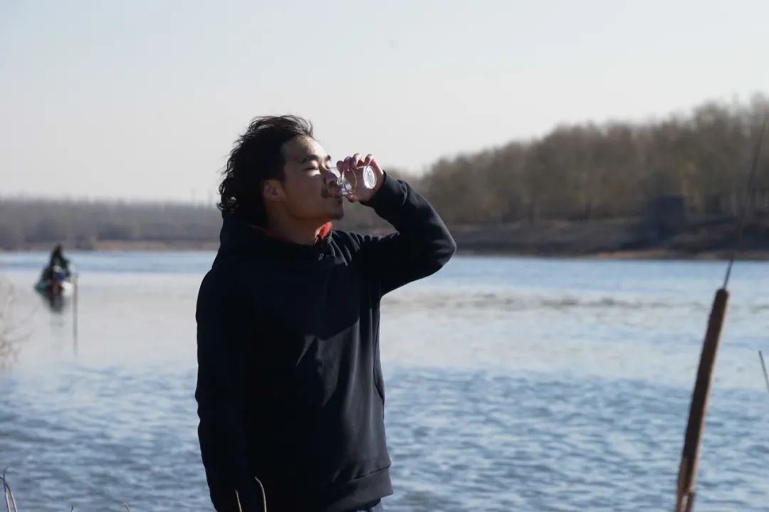 有一個藝術家叫厲檳源,他舀了一杯水一飲而盡,然後讀了一首詩,“晚來天欲雪,能飲一杯無”。