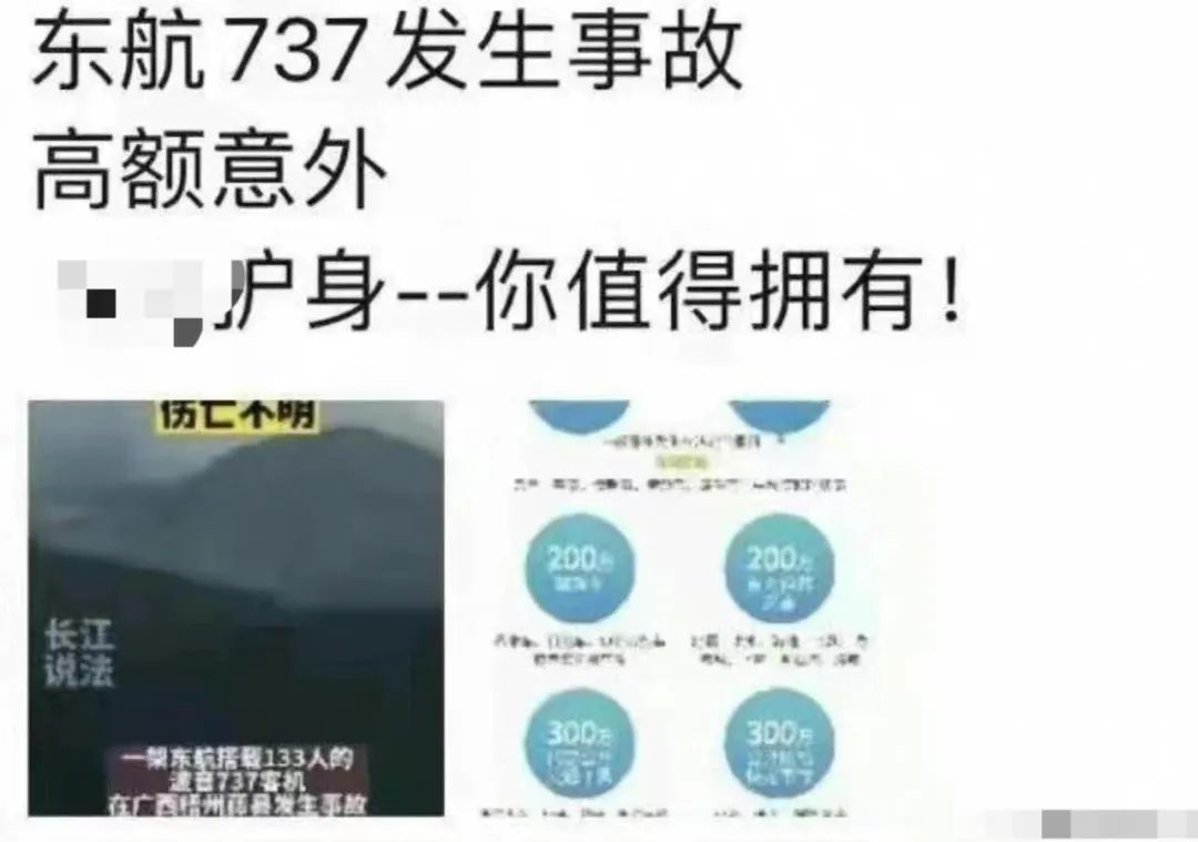 就在舉國沉浸在悲傷和不安,有人在出力、有人想盡一份力,家屬在悲痛中無法自拔時,一批以墜機為噱頭的災難營銷卻悄然出現、活躍。