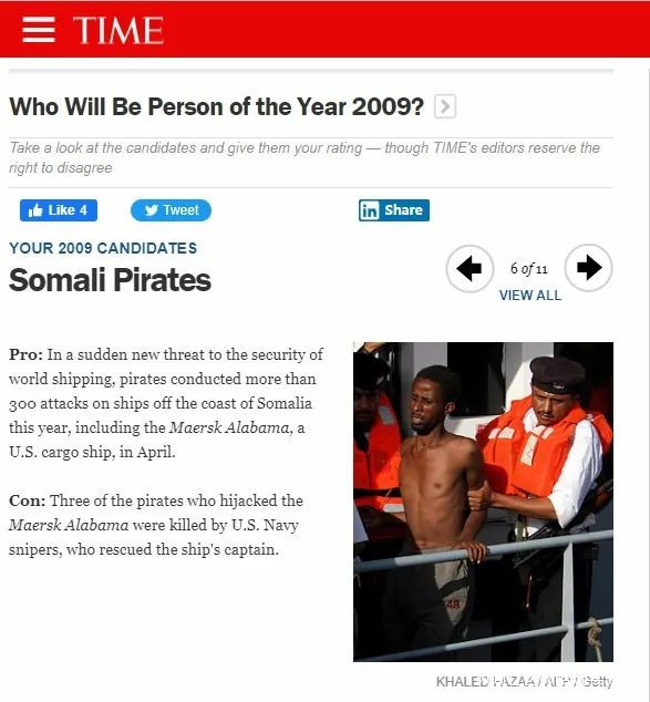 2009年,這幫亞丁灣的亡命之徒位列《時代週刊》十名年度風雲人物候選人之列儘管他們最終落選,卻在全球範圍樹起了響亮招牌。