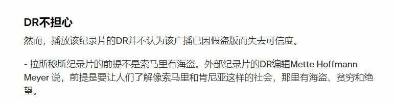 “真正的海盜們有的是錢,他們為什麼要接受採訪?他們沒有時間向白人講述他們的故事。”