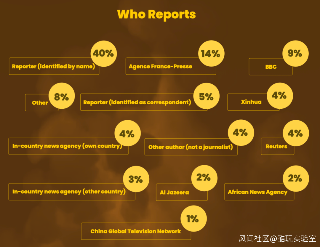直到2021年,Africa No Filter主任Moky Makura發起的一項調查顯示,35%的報道來自外國媒體機構。