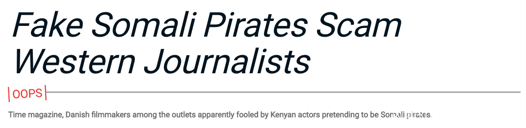 隨着西方媒體的威信一路下滑,甚至他們已經知道西方需要什麼,並且為此衍生出了假海盜產業。