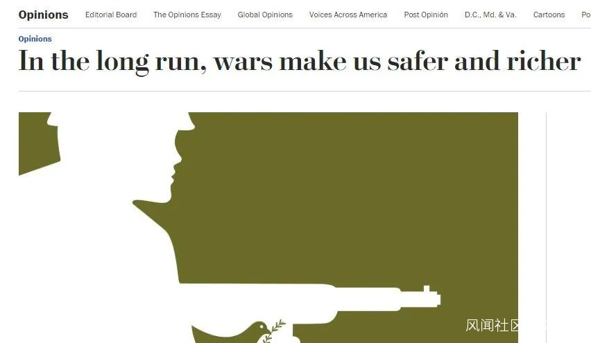 “從長遠看,戰爭使我們更安全富有”(截圖來源:《華盛頓郵報》官網)