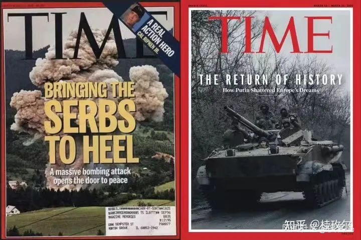 美式雙標報道:“北約用轟炸打開和平大門”“普京打碎了歐洲美夢”。圖源:網絡