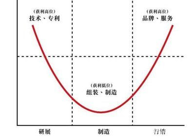 傳統消費品的價值分配是一個微笑曲線。微笑曲線的右端是品牌,左端是研發。蘋果是非常典型的微笑曲線,研發和品牌強勢,用户體驗非常棒,品牌溢價非常高。過去幾十年,全球消費品牌非常認同微笑曲線模型。