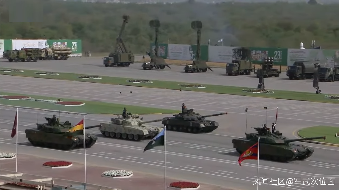 相比空軍而言,巴基斯坦展出的地面裝備顯然更有“中國味”。4輛主戰坦克——兩輛VT-4、1輛哈立德、1輛T-80UD構成的車隊作為先導率先駛過。利用坦克的獵-殲系統,4輛坦克同時將炮口指向主席台敬禮——和三哥的閲兵一模一樣。