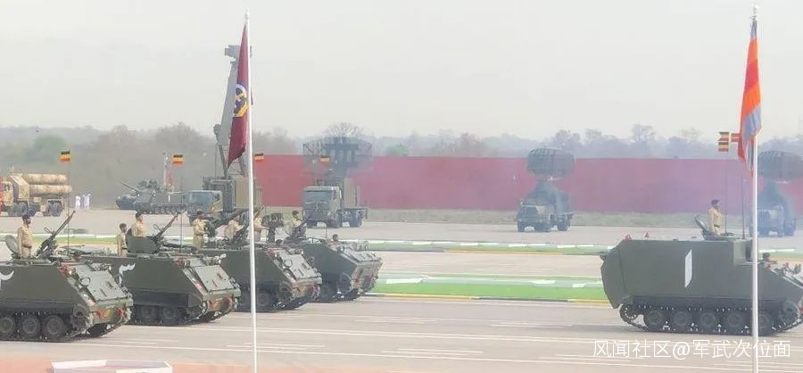 緊隨着高大威猛的VT-4出場的,是一大羣罐頭一樣的老式車輛:美製M113裝甲運兵車。對於一支現代軍隊來説,M113無疑是一種老舊落後的車輛,類似的裝備在解放軍中已經難覓蹤影了。