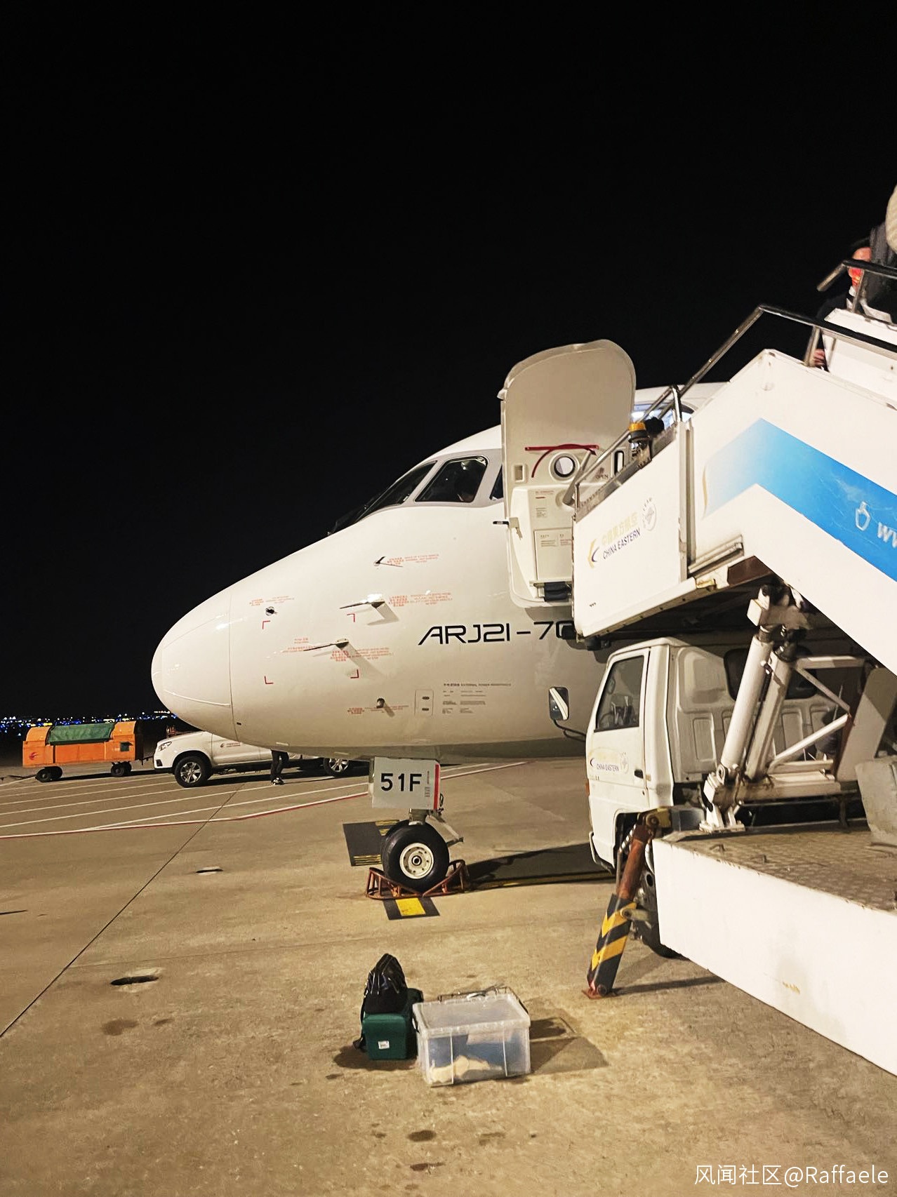相反,在2月份一次飛行中,我乘坐的國產ARJ-21飛機卻給了我相當不錯的感受。首先一個是靜音,雖然座位離發動機不算太遠,但聲音明顯要比波音空客的飛機輕很多;其次是飛行非常平穩,尤其是沒有氣流的時候,甚至感覺比高鐵還穩,腦袋靠在舷窗上完全感覺不到AB飛機常見的震動;最後,機身內外各種中文提示,尤其是機長在講完安全提示後,有這麼一句話: