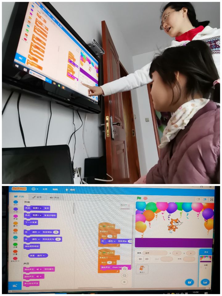 為了便利小寶體驗編程的學習,我們把家裏的一台舊筆記本電腦給她專用,同時還給她購置一台72吋的大型顯示屏用來播放課件。