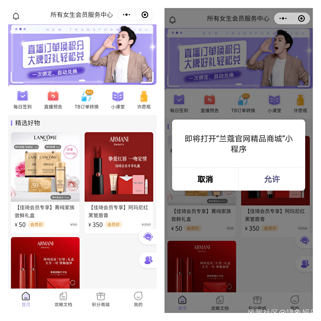 事實上,如何分攤超級主播的風險在業內早已開始探索,只是“薇婭事件”加快了更多佈局者的步伐。以李佳琦為例,早在2021年初,“所有女生”小程序就已上線,只是在當時,這個小程序更像是李佳琦的直播提醒工具。但後來,“所有女生”中接入了淘寶訂單兑換積分的入口,這被很多人視為李佳琦將淘寶流量沉澱為私域的重要一步。