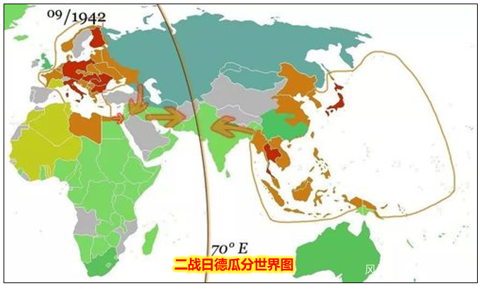 最後大家看一張圖,這張圖是二戰的時候日本和德國瓜分世界的圖:這張圖也是未來世界“兩極化”的大體輪廓,印度很顯然在我們這極之內!