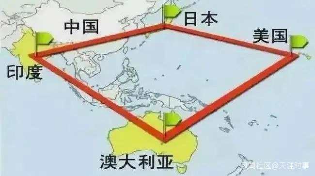 所謂的“印太戰略”就是由美國、日本、澳大利亞和印度組成的一個針對中國的小團伙,這四個國家在地圖上形成一個“鑽石”圖樣,也被稱為“鑽石同盟”。