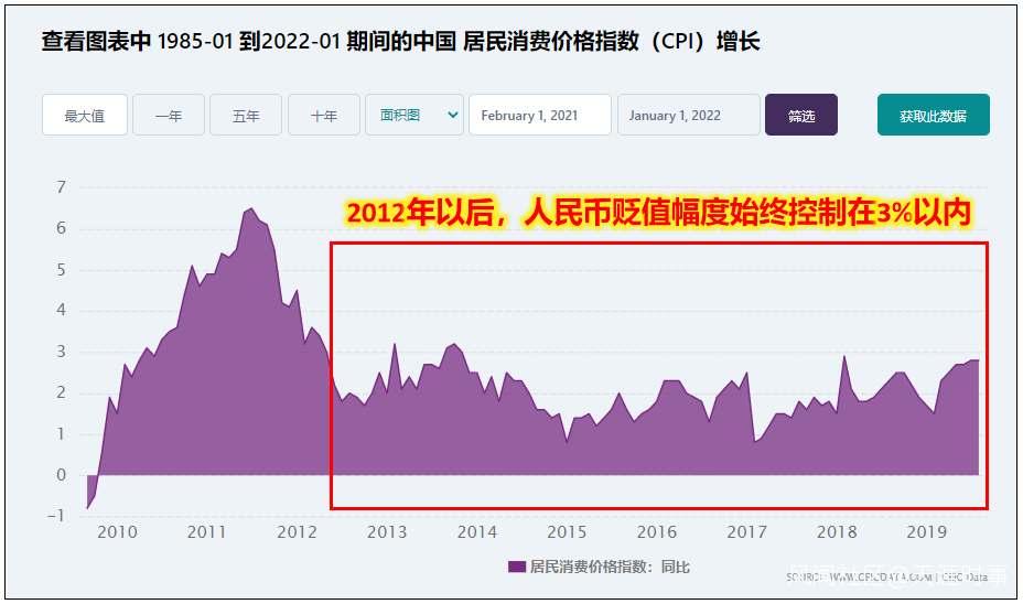 如果你去看各國的通脹,你就會發現:在2020年之前,美元、日元和歐元的貶值幅度是非常小的,長期在3%以內。