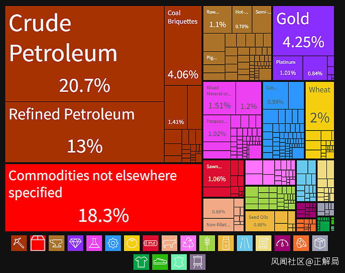 再看下面這張圖,是一張俄羅斯出口產品的結構圖。