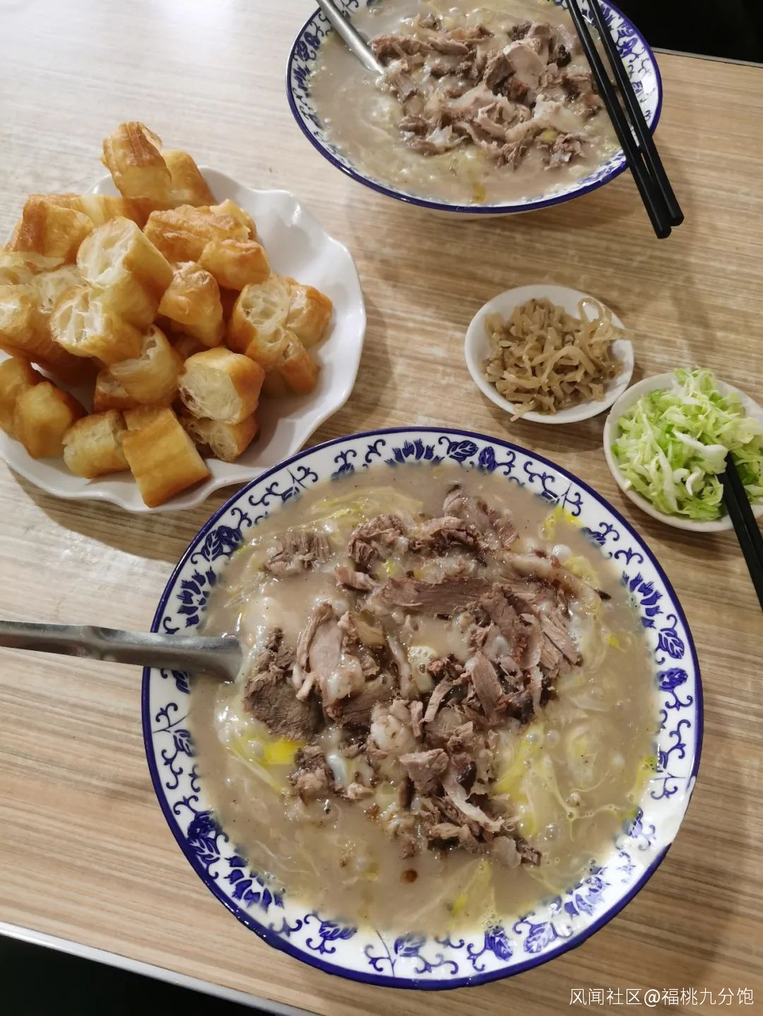 這還只是半成品,必須得看見師傅把一小盆白麪水倒進鍋裏,把湯攪得濃稠誘人。