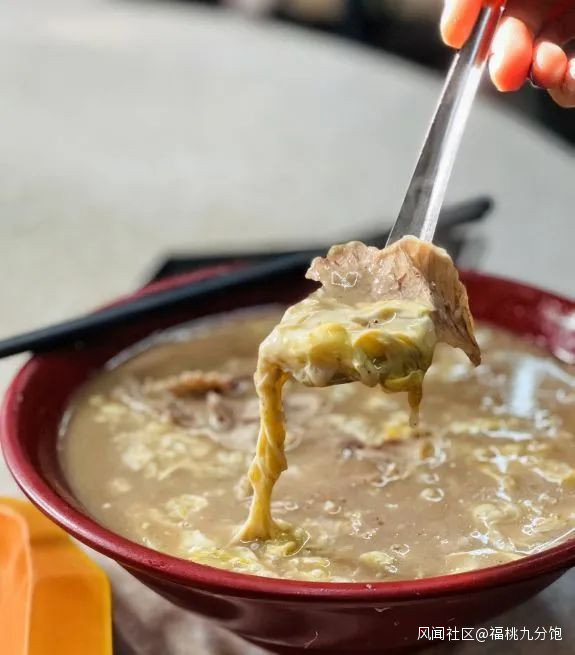準確來説,糝是一種肉羹,在魯南蘇北特別流行,由於其味酸辣香濃,特別適合解酒,所以山東不少糝館,都是24小時營業的。