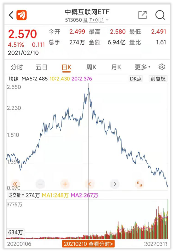 從2021年2月開始,中概股長期呈下跌趨勢,且整體沒有止跌的趨勢。