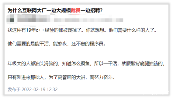 因此,裁員傳聞一經傳開,立即有人指責某些公司是藉此機會進行針對性優化,讓更年輕、更便宜的人來替代“老人”進行工作,以此削減成本。