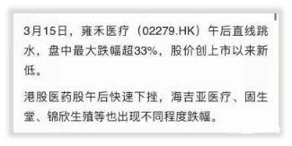 有人觀察到一個有趣的現象,3月15日,主營植髮業務的雍禾醫療,港股股價暴跌了24.81%,盤中下跌最高超過了33%。