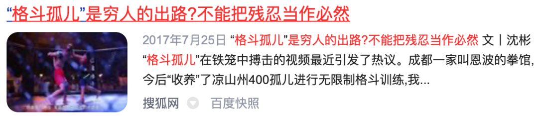 涼山、格鬥、孤兒,三個關鍵詞刺激着網友的神經。