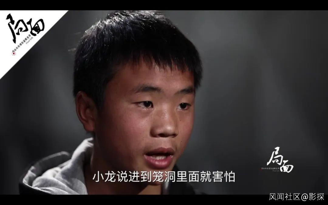 鏡頭閃切,小孩自述:“一進籠子,就害怕得很。”