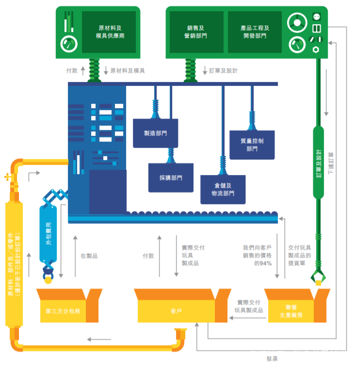 作為OEM玩具製造商,公司向尋求以具競爭力成本生產優質玩具產品的全球知名客户提供一站式方案,理念是成為全球知名玩具品牌認可的領袖及信賴的解決方案提供商夥伴。