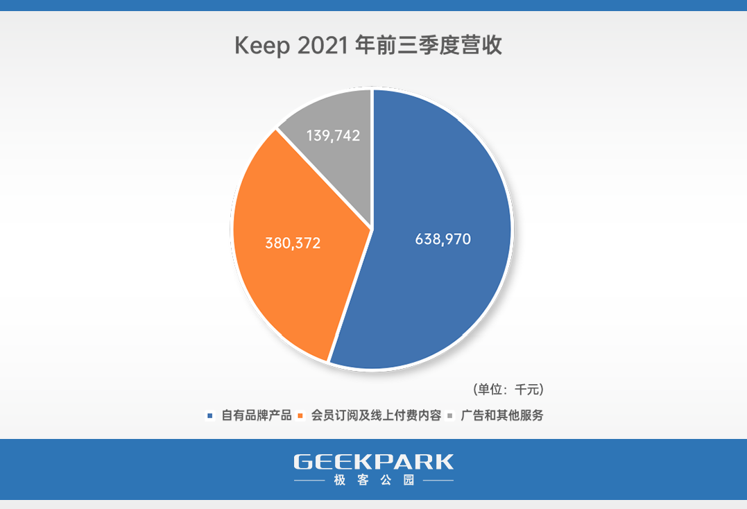 Keep 在招股書中將自己的收入分為三個板塊:會員訂閲及線上付費、自有品牌產品、以及廣告和其他服務。