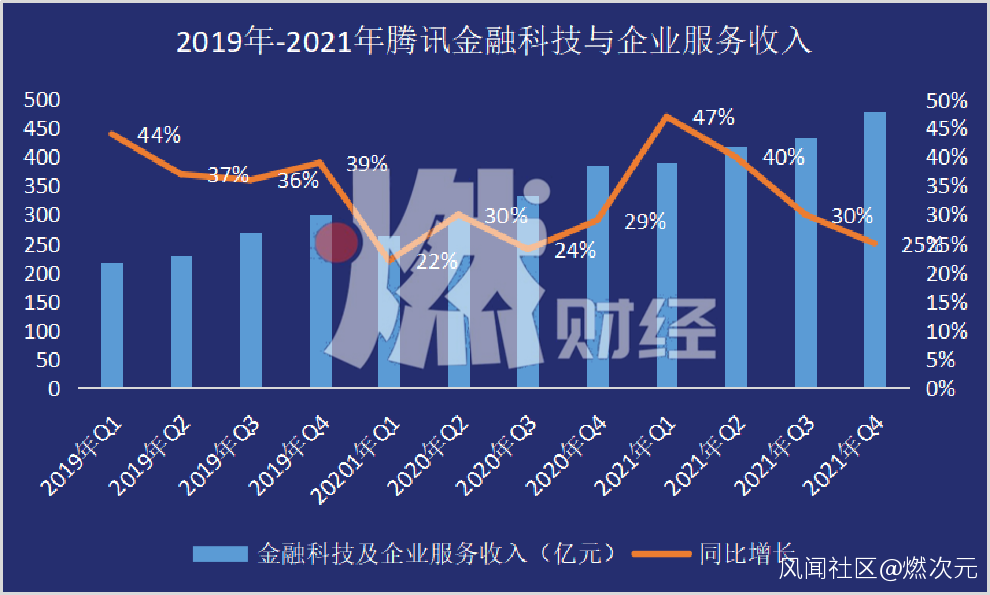 實際上,自2019年第一季度獨立公開於騰訊財報開始,金融科技與企業服務就是近年來騰訊收入增速最快的項目。