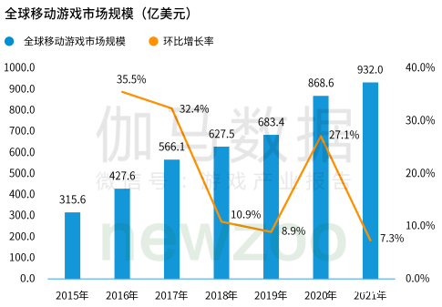 據伽馬數據發佈的《2021全球移動遊戲市場中國企業競爭力報告》,2021年全球移動遊戲市場規模增速相比2020年大幅度收窄,收幅近20%。報告中稱,這是因為2020年由於疫情引起的宅經濟紅利已過。