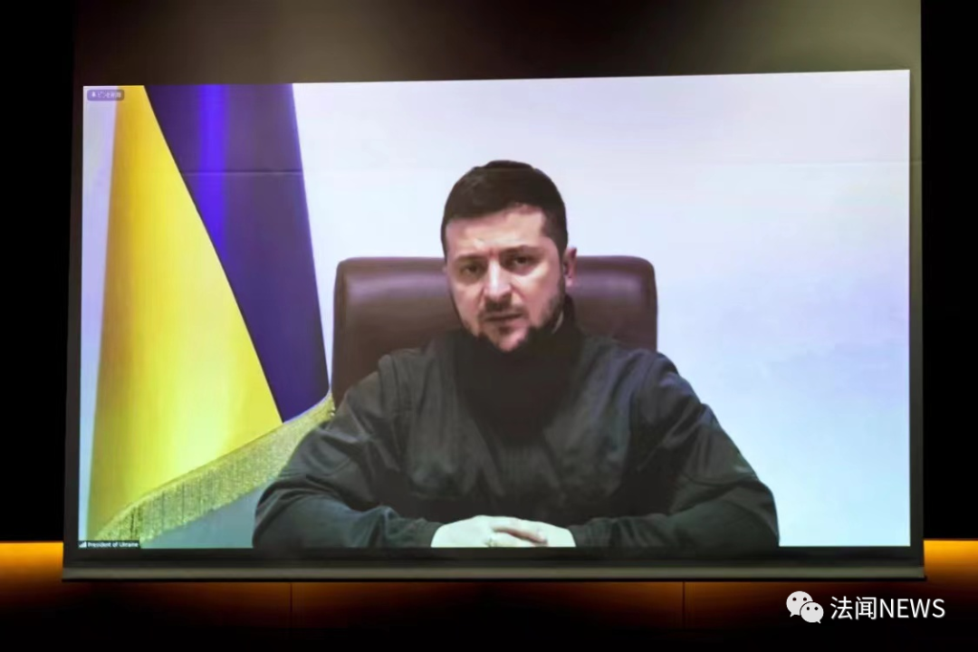 今天下午,烏克蘭總統澤連斯基在法國國民議會發表視頻演講。