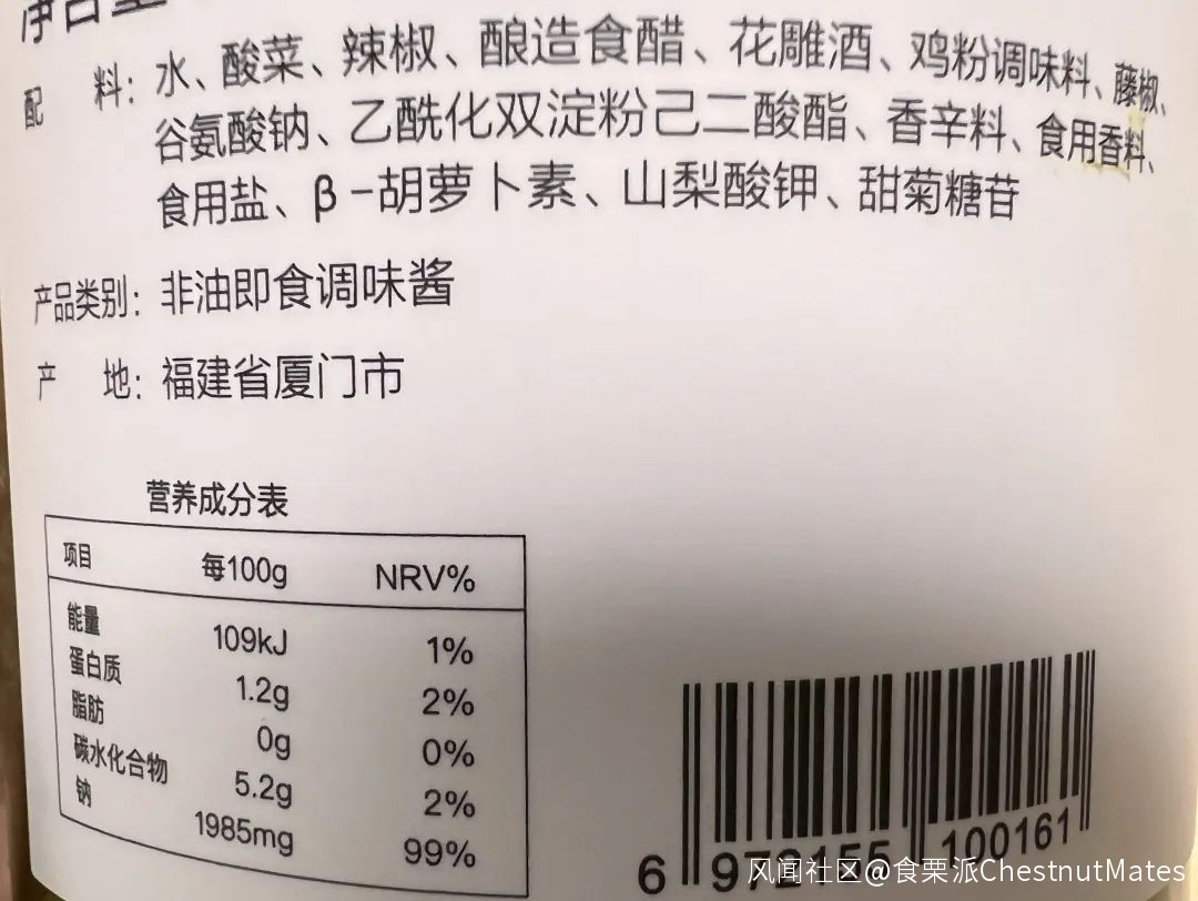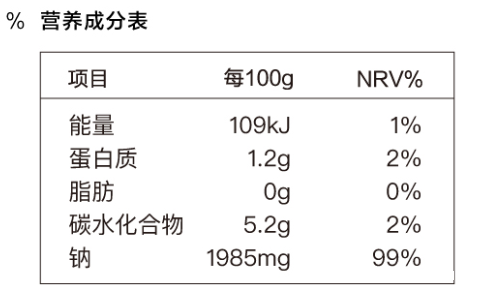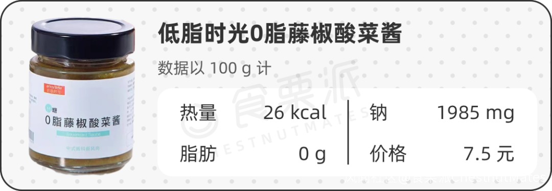 ▲低脂時光0脂藤椒酸菜醬的營養成分信息